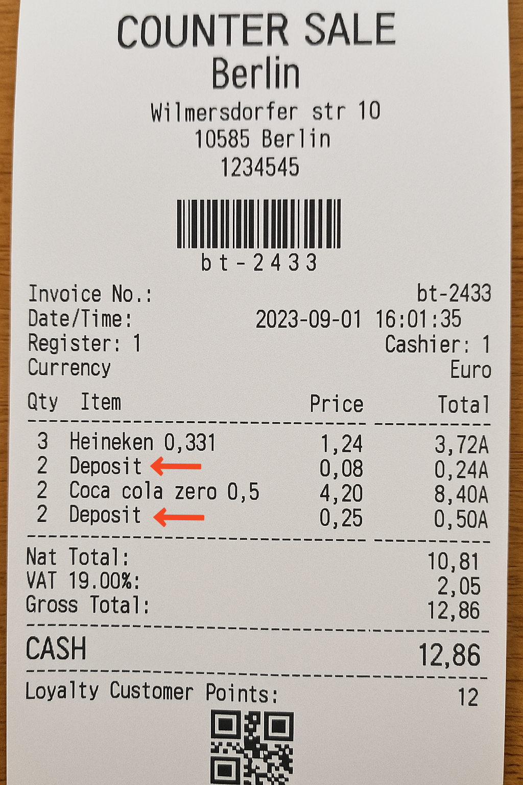For example, if you select "Deposit as a single item", the deposit will be shown separately on the receipt.