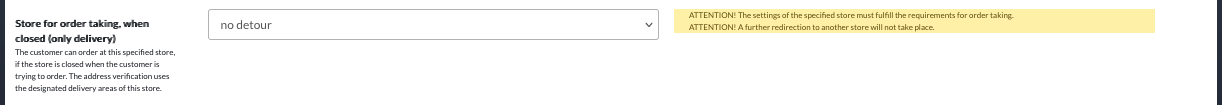 Consider delivery time at the END of opening hours NOT on order: If activated, orders can be placed until the end of opening hours. For example, if you are open until 10 PM, the customer can place their order until 10 PM. Production and delivery of the goods will then only take place after 10 PM. If not activated, the order must be able to be delivered by the end of opening hours. If a minimum delivery time of 30 minutes is specified here, the customer can place their order until 9:30 PM in this case.
