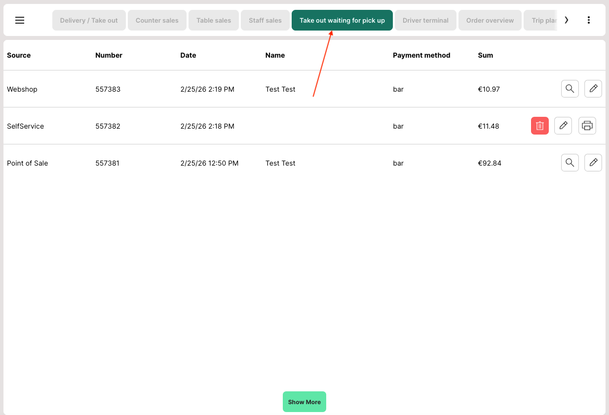 - In the POS, go to the "Take out waiting for pick up" section.