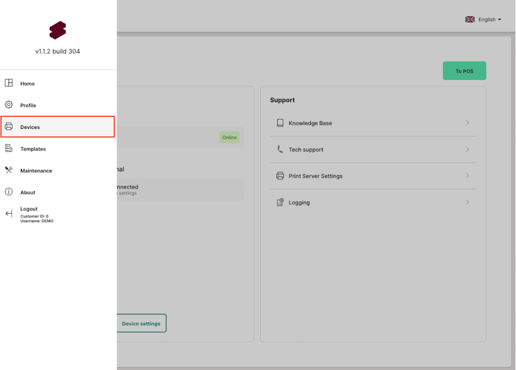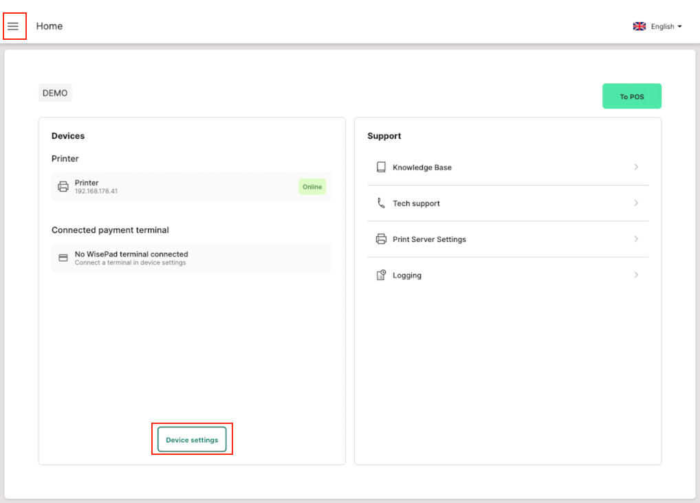 1. Open the menu in the top-left corner or tap "Device settings" on the home screen.