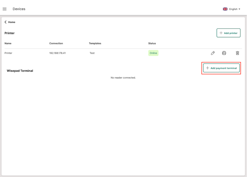 1. Once the WisePad 3 is connected, the payment method "Bluetooth Terminal" can be selected.