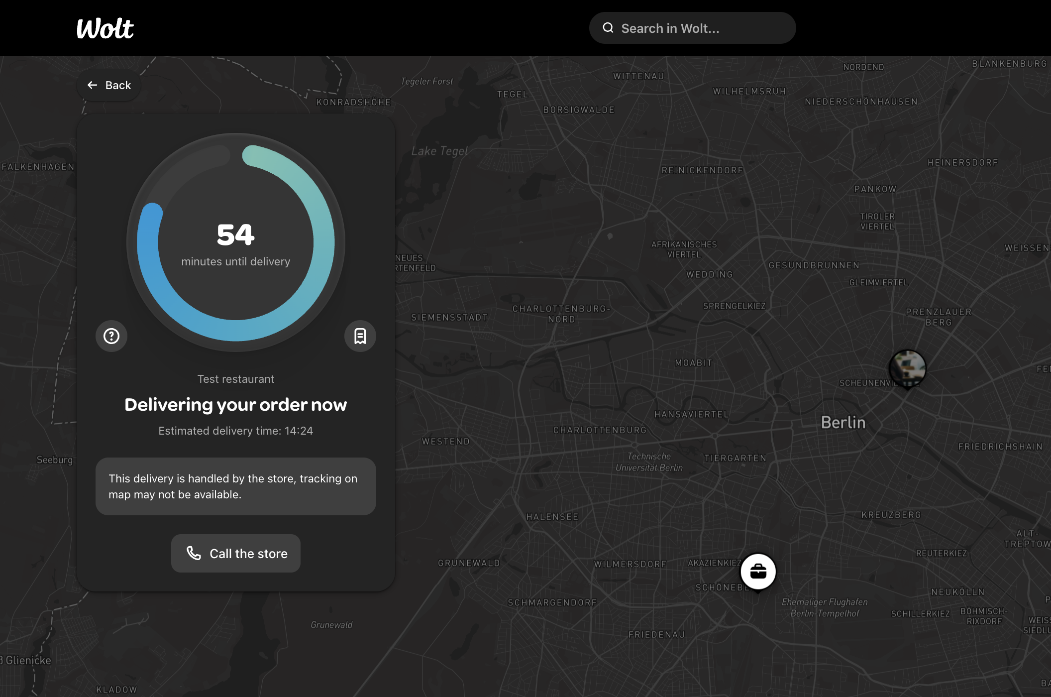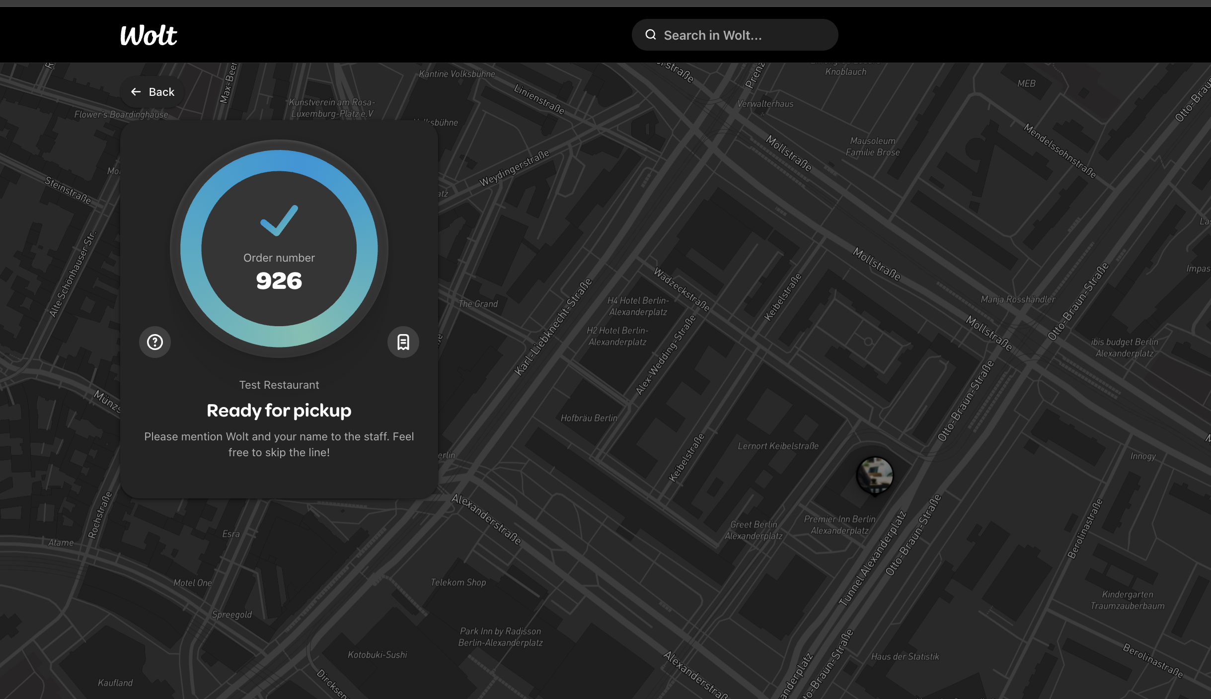- For pickup orders, the updated status on the Wolt page changes to "Ready for pickup".