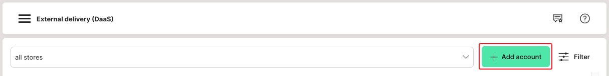 3. On top left of the screen, you can click "Add account" to make a new account. You can also filter your stores to check for active DaaS accounts already set up.