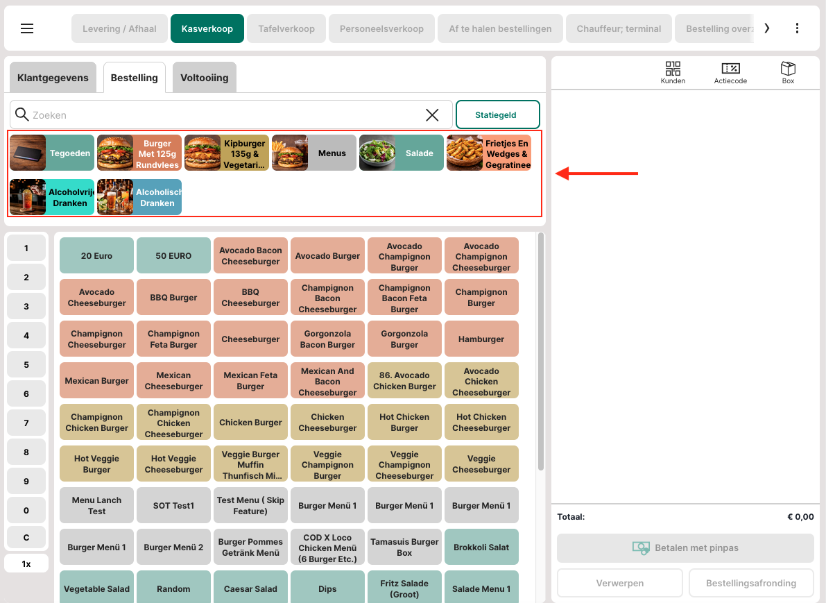 Dit vergemakkelijkt de visuele oriëntatie en ondersteunt een snellere navigatie tijdens het opnemen van bestellingen.