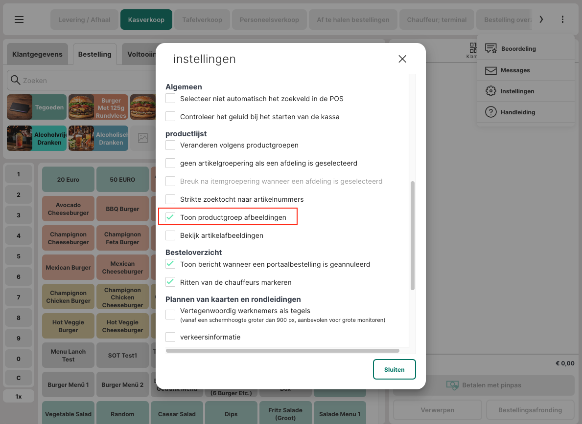 Waar POS: Driepuntsmenu > Instellingen > Toon productgroep afbeeldingen. |