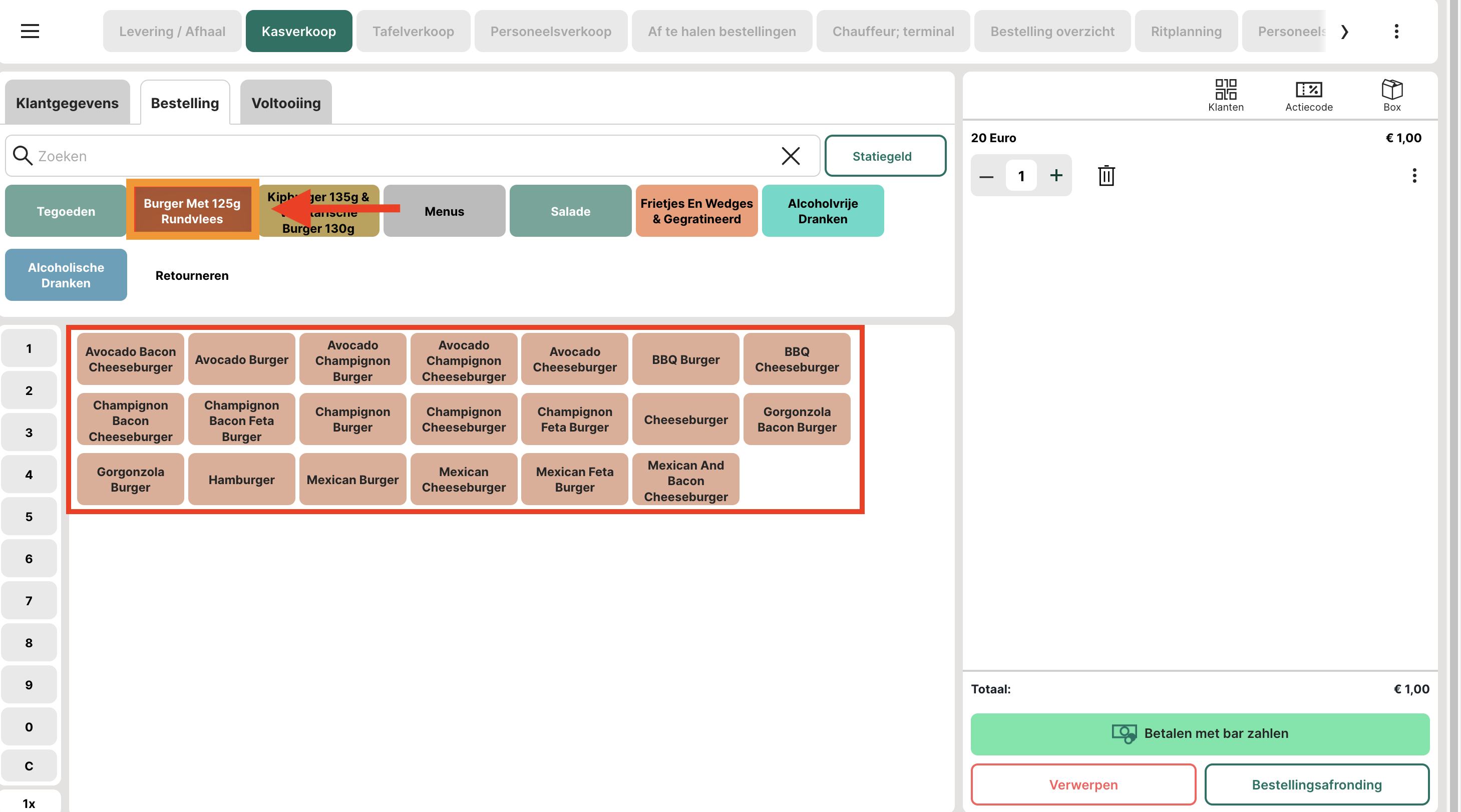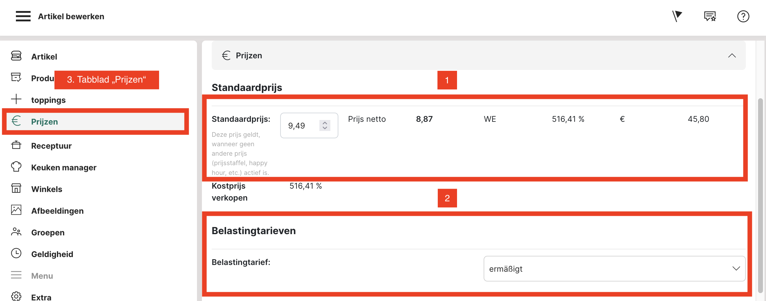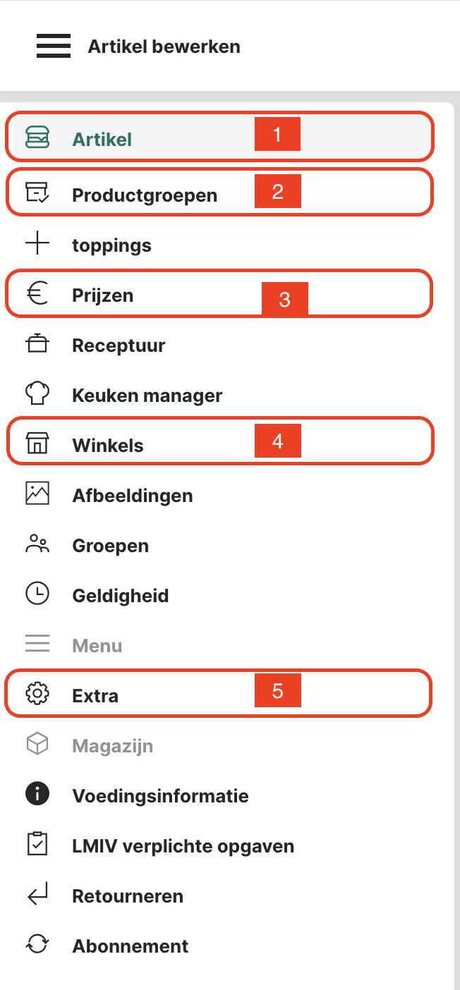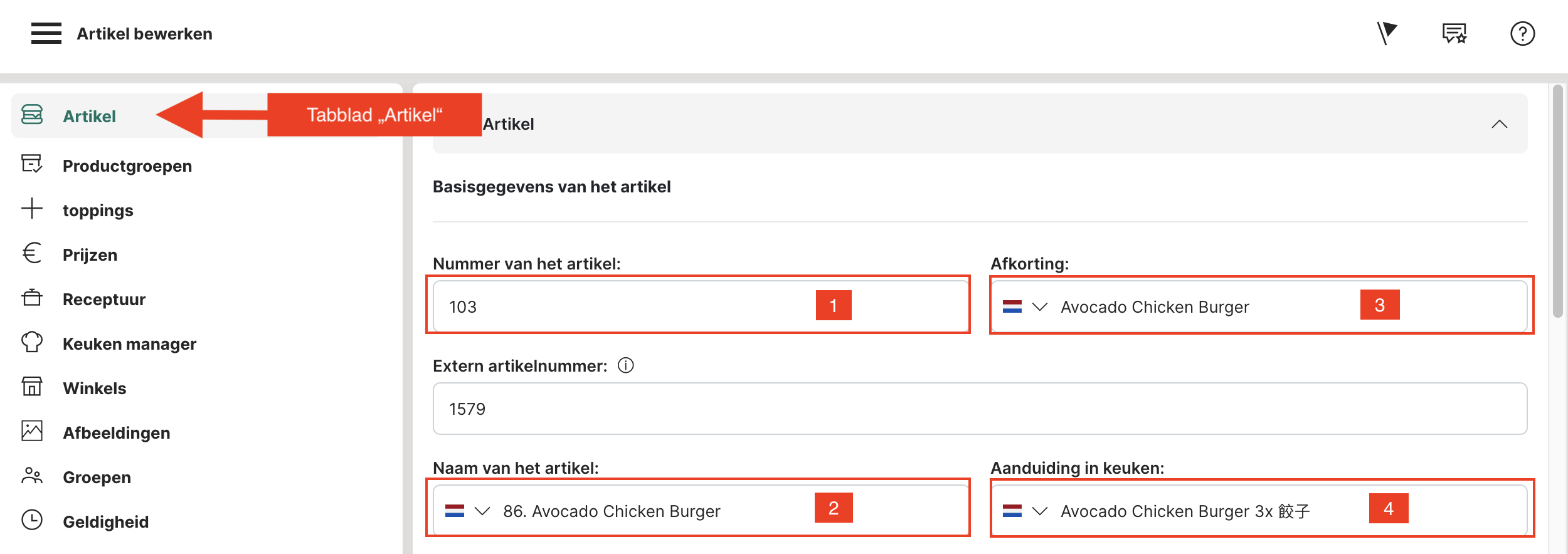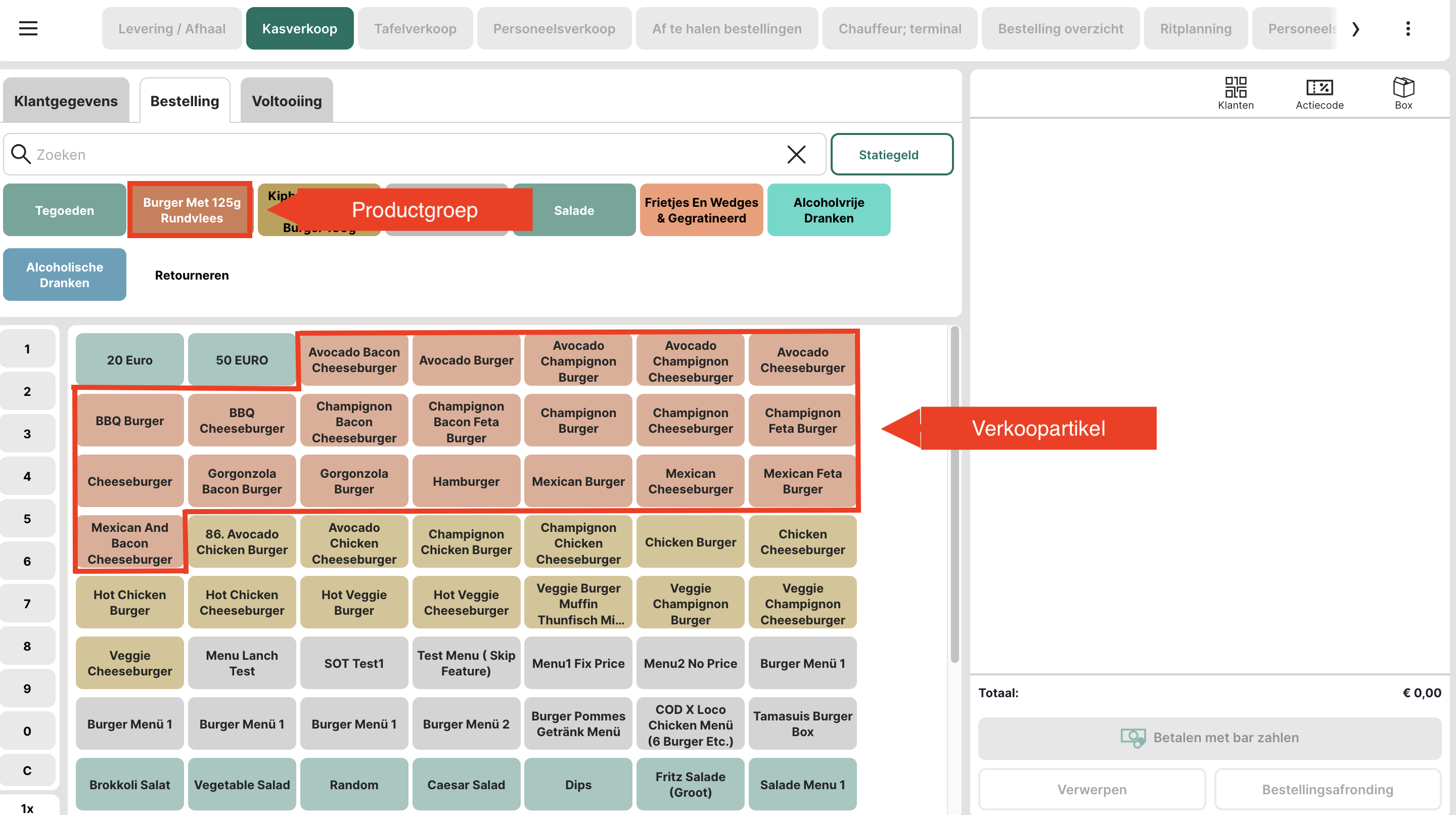 Voor een eenvoudig basisartikel zoals in het bovenstaande voorbeeld moet eerst een productgroep worden gemaakt. In ons voorbeeld maken we een productgroep voor "Kebab".