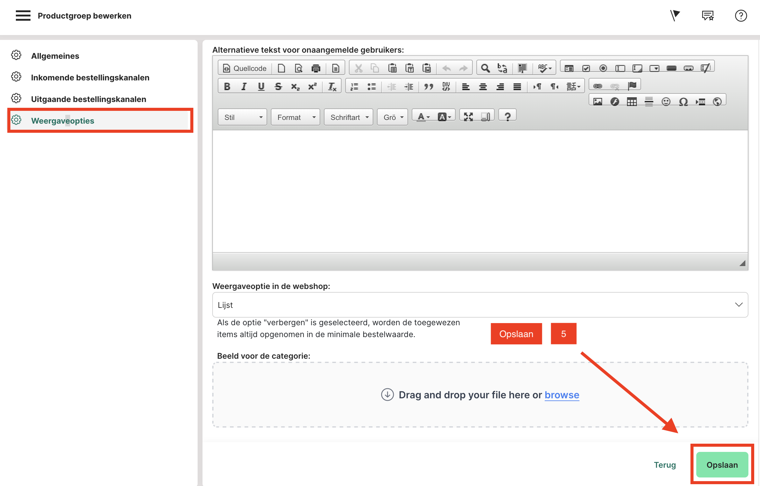 5. Ga nu naar "Opslaan" onderaan (stap 5).