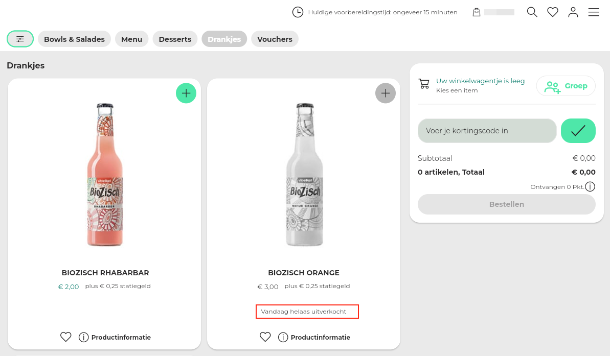 Het systeem controleert bij elke bestelling (directe bestelling of pre-order) of het artikel beschikbaar is op het gekozen (pre-order) tijdstip.