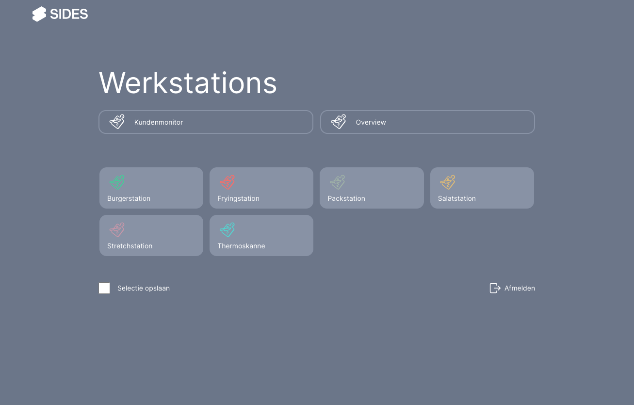 Werkstation kiezen | Hier kan een werkstation worden geselecteerd en kan uit de keuken manager worden uitgelogd. | |