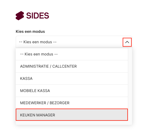 Om de keukenmanager te gebruiken, logt u eerst in op de simplypos.de interface en selecteert u hier Keuken manager.