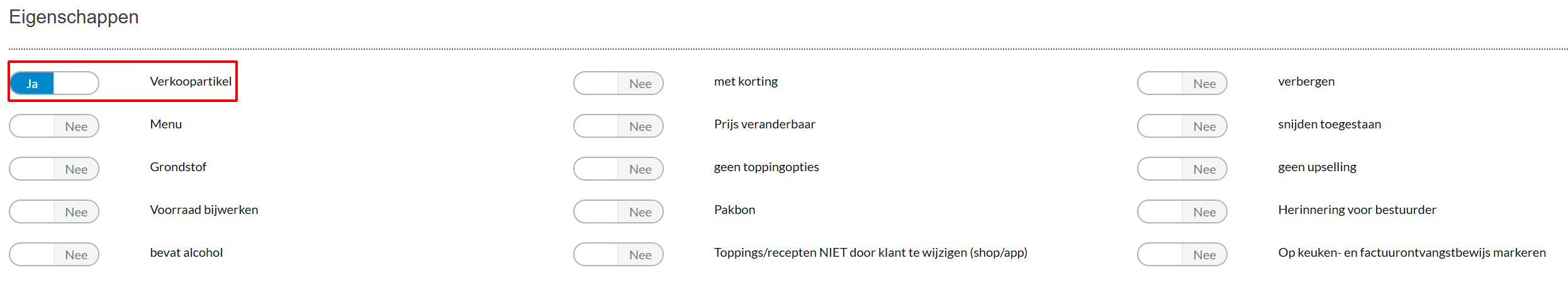 - Controleer of Webshop en Mobile Webshop op Ja staan voor zichtbaarheid in de webshop.