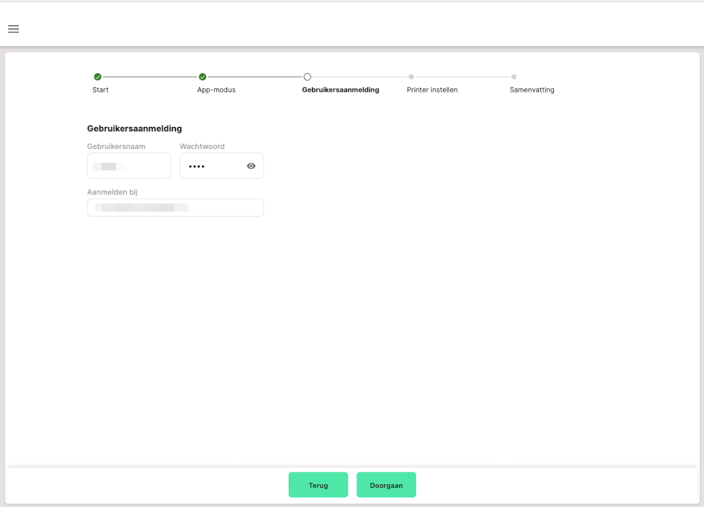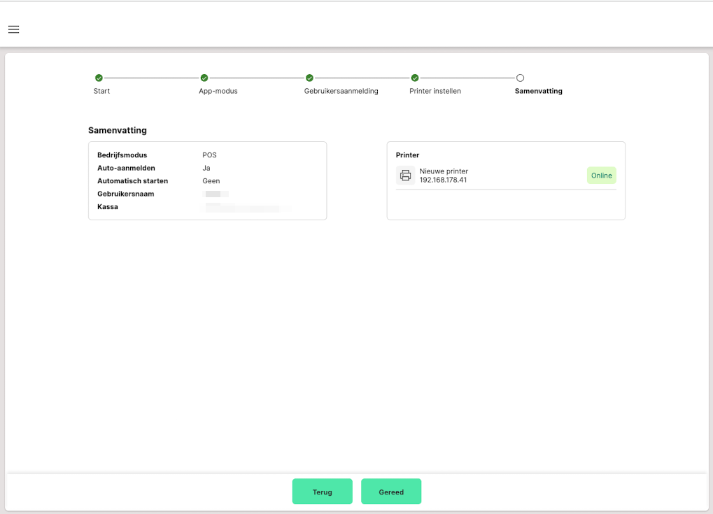 installatieassistent van de POS-app begeleidt je stap voor stap bij de