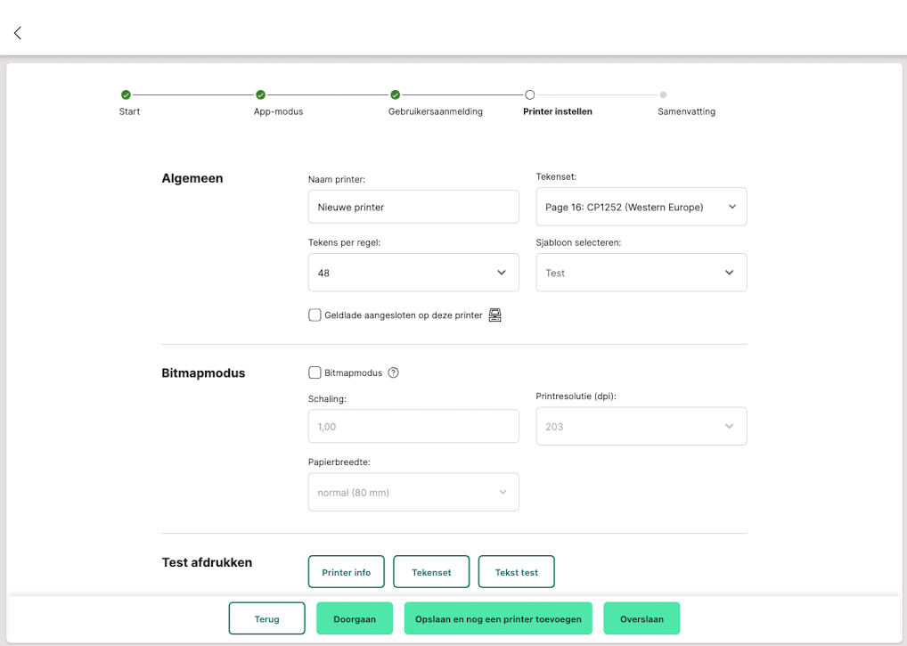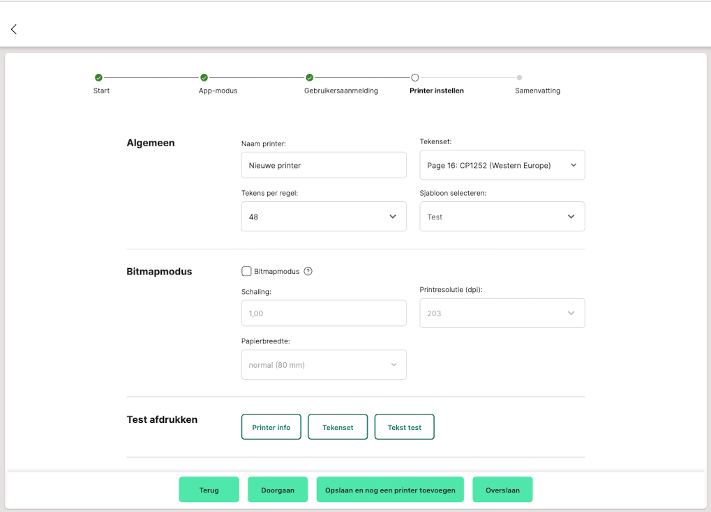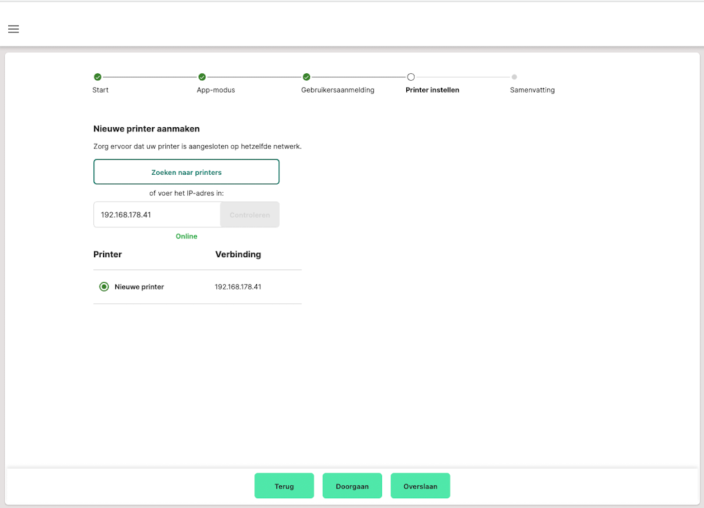 - Klik op "Doorgaan" om naar het overzicht te gaan, of op "Opslaan en nog een printer toevoegen" om een extra printer toe te voegen.
