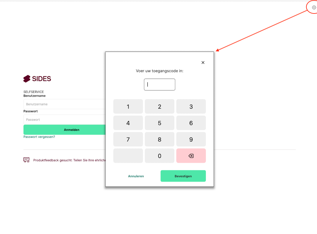 - Tik op het tandwielpictogram en voer vervolgens je ingestelde PIN in.