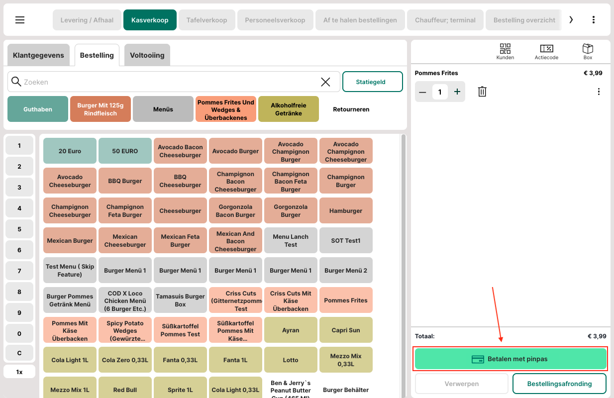 Via een extra knop kan een bestelling onmiddellijk worden afgerond met de standaard ingestelde betalingswijze – ideaal voor Quick Service Restaurants (QSR).