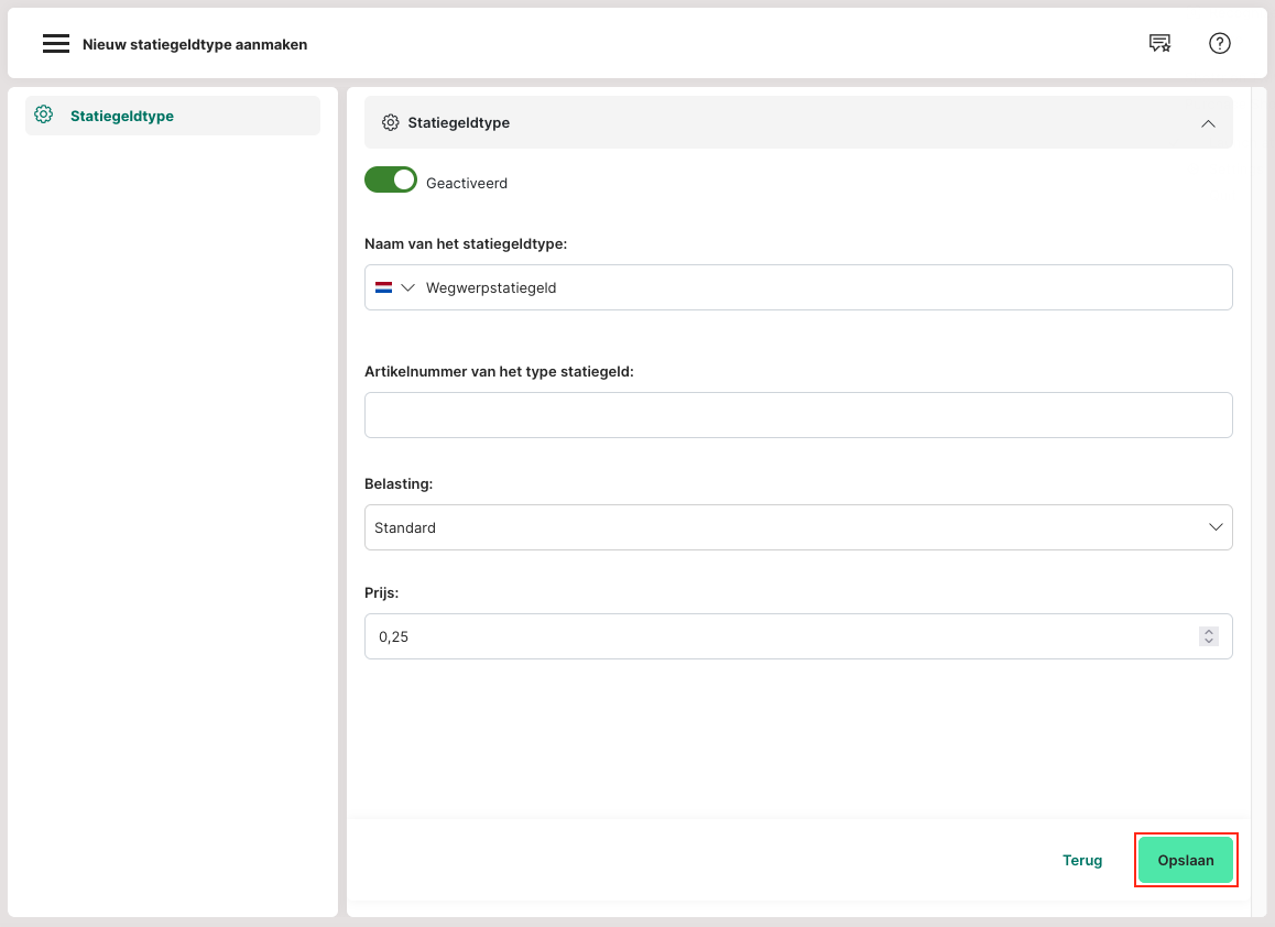 - Klik op "Opslaan" om het statiegeldtype aan te maken.