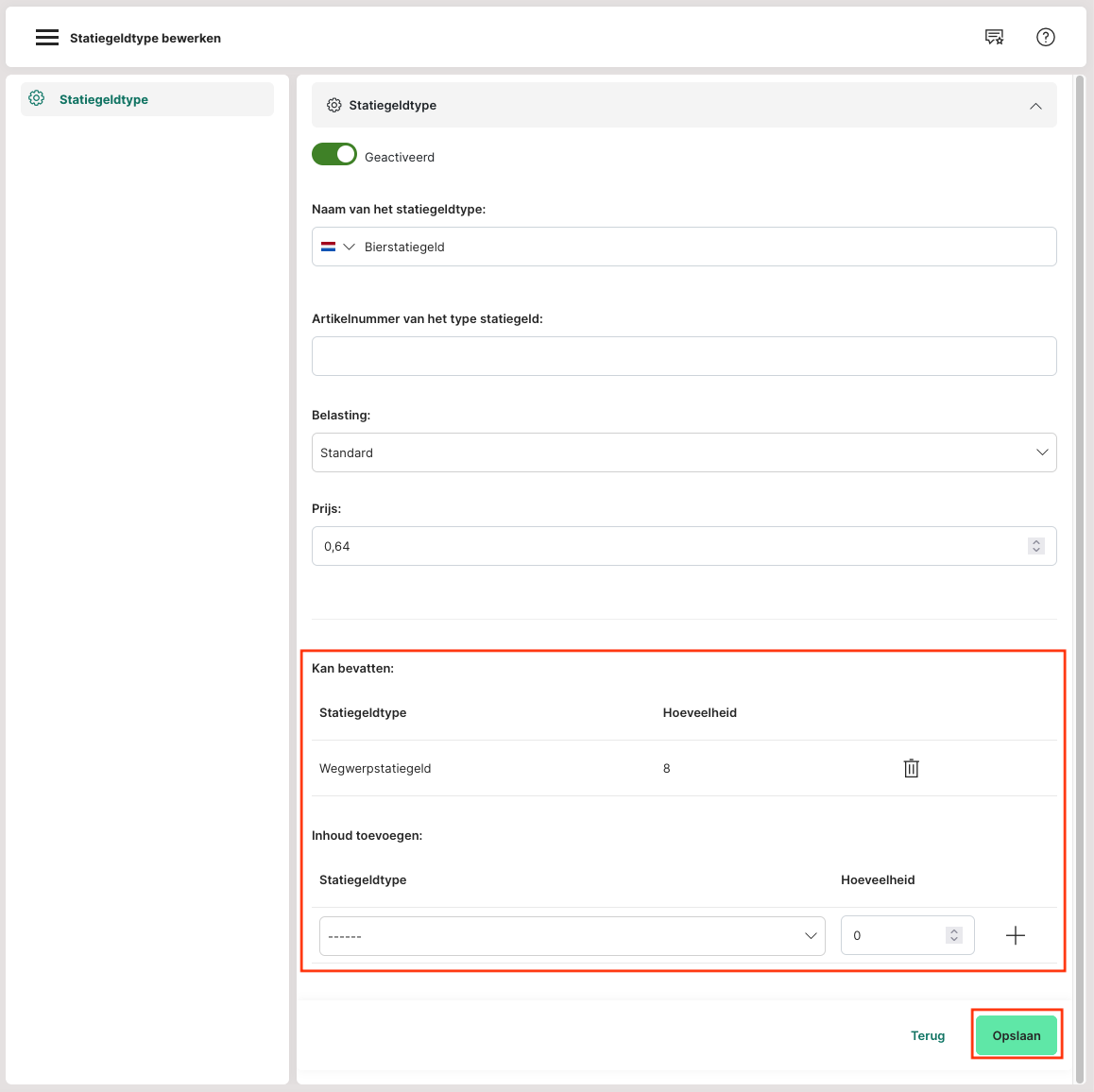 Hier kun je definiëren uit welke individuele statiegeldtypes het huidige statiegeldtype bestaat.
