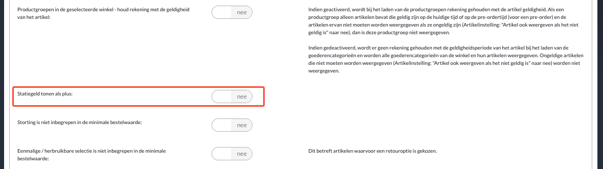 - Daar kan de optie "Statiegeld tonen als plus" worden in- of uitgeschakeld.