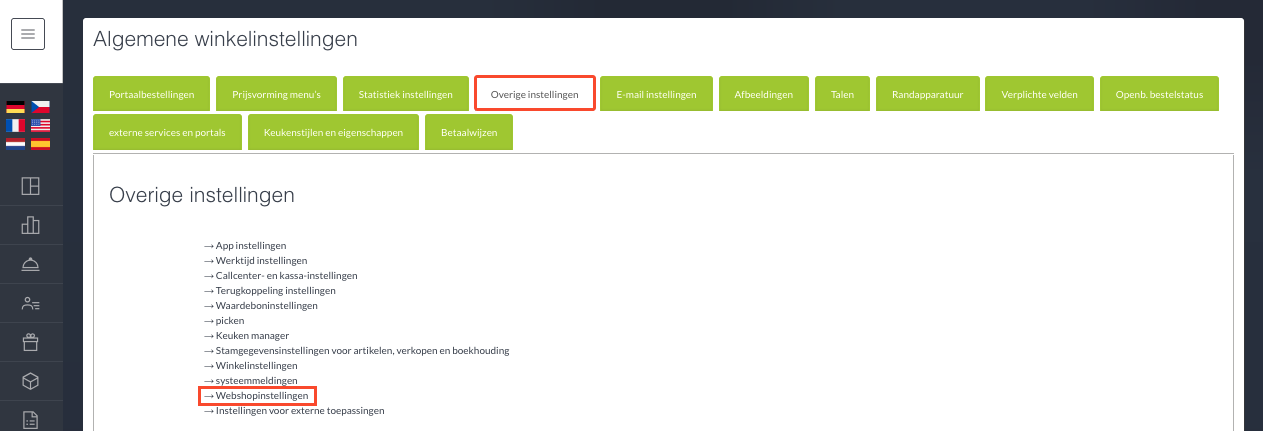 - Navigeer naar Admin: Globale Instellingen > Algemene winkelinstellingen > Overige instellingen > Webshopinstellingen.