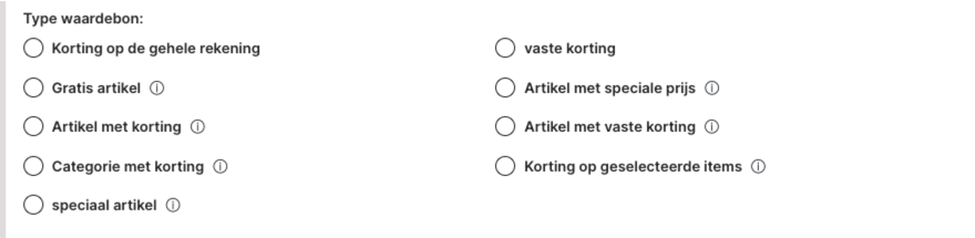 Ja, met klantenloyaliteit, gratis prijs: Als deze instelling is geselecteerd, is de aangemaakte Waardebon een CRM waardebon. Een nieuwe tegoedboncode kan worden aangemaakt in de kassa. Deze klant moet ALTIJD ingelogd zijn in de webshop of geselecteerd zijn in de kassa om de tegoedbon in te wisselen. De waarde van de Waardebon kan vrij ingevuld worden in de kassa.