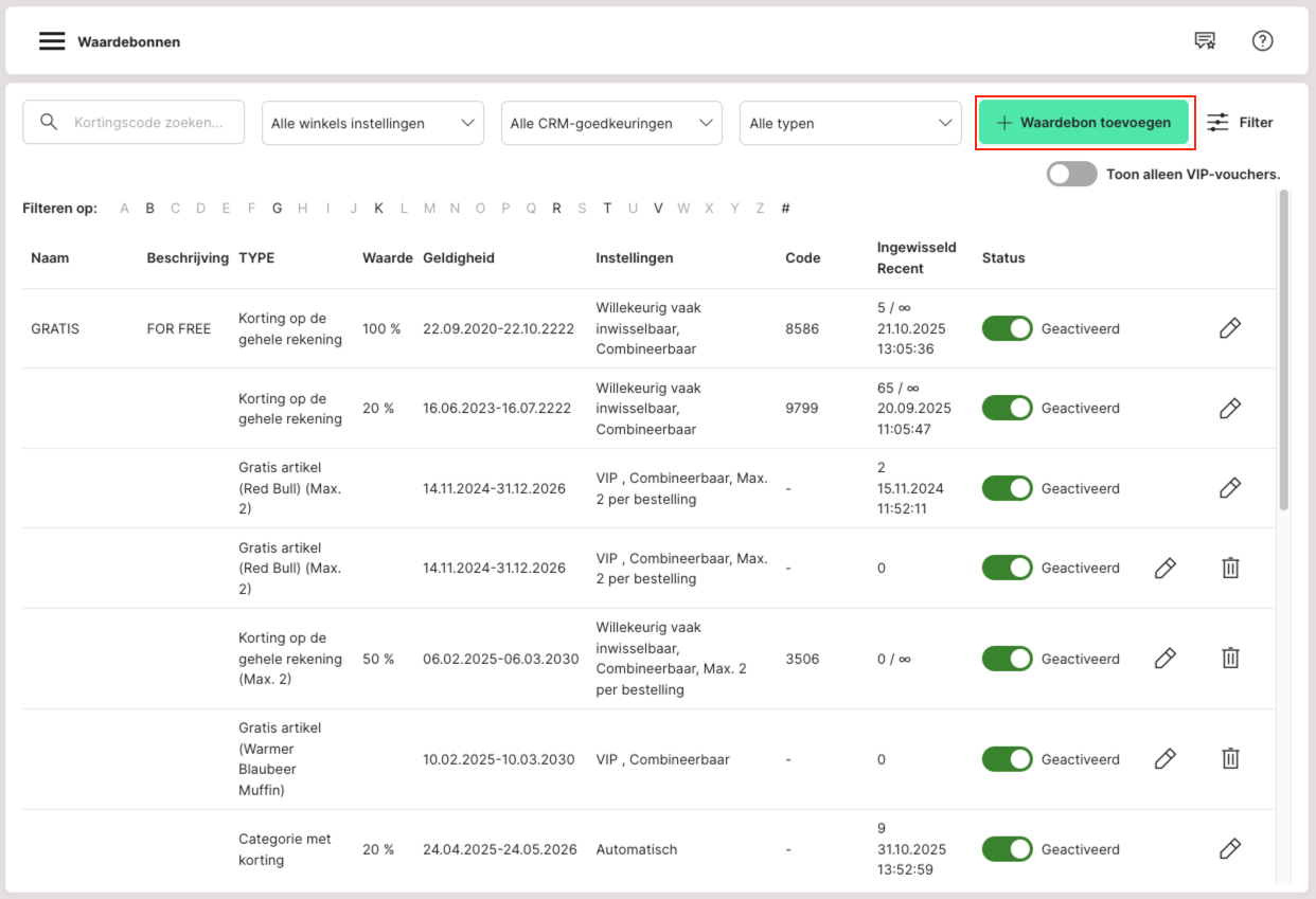 Kan willekeurig vaak gebruikt worden: als deze optie is geactiveerd, kan de klant deze Waardebon bij elke bestelling inwisselen.
