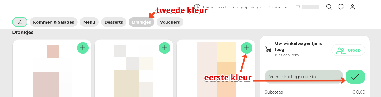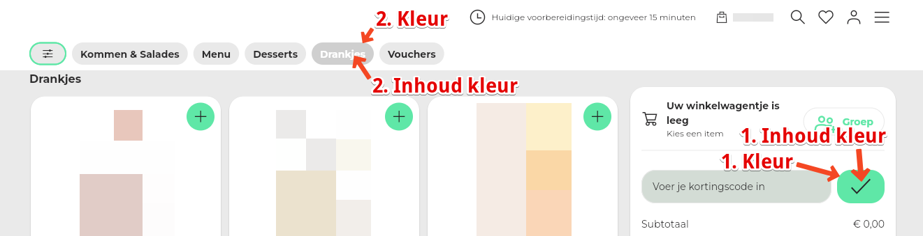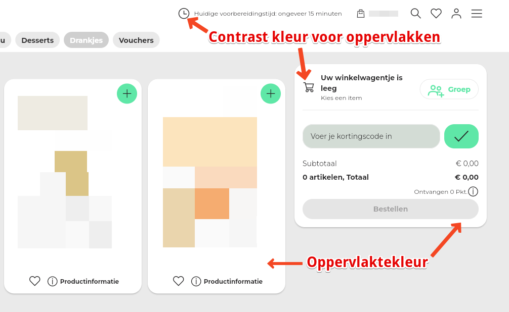 14. De achtergrondkleur betreft de kleur achter de tegels, vakken en de winkelwagen.