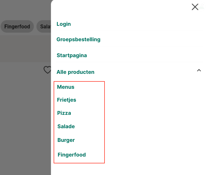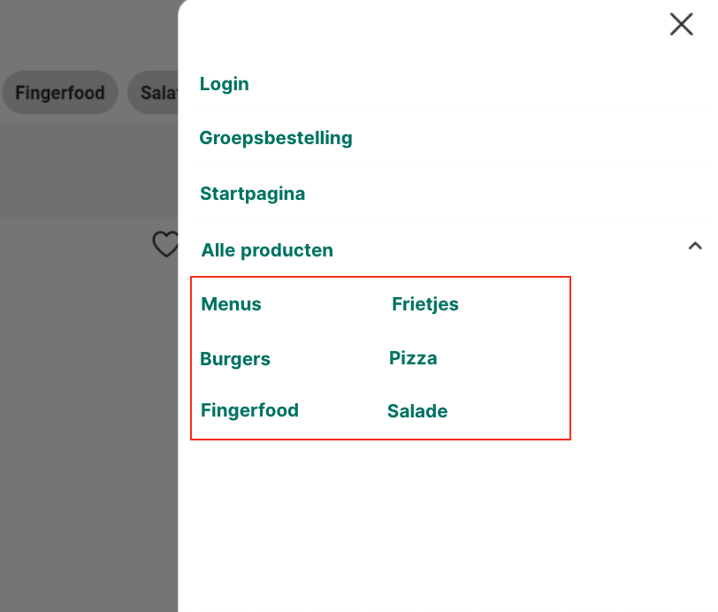 Het "zijmenu" is alleen van toepassing op de mobiele webshop, d.w.z. de versie van uw webshop die specifiek is geoptimaliseerd voor mobiele apparaten, zoals smartphones en tablets.