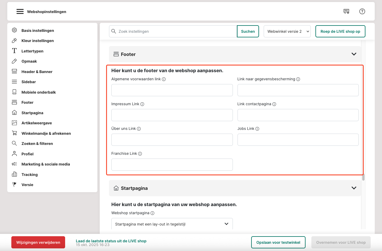 7. Onder "Logolink" kun je een link achter je logo in de webshop plaatsen, zodat je naar een bepaalde pagina wordt doorgestuurd wanneer je op het logo klikt.