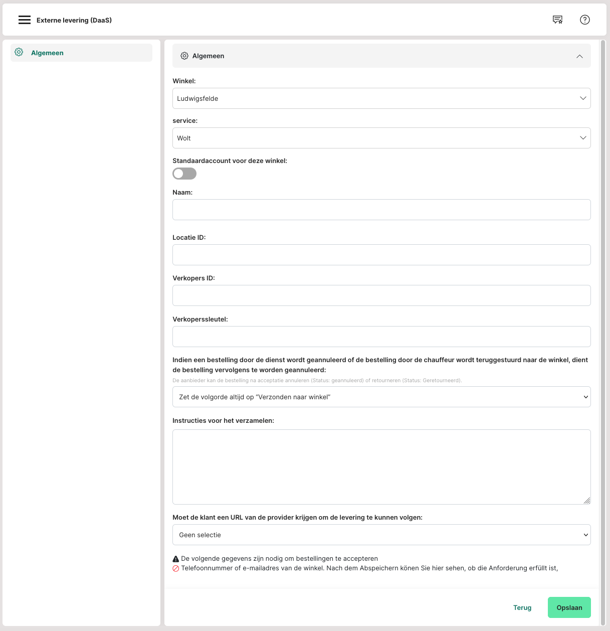 - Je kunt maar één standaardaccount per winkel hebben. Dit betekent dat als je zowel Uber Direct, Wolt Drive als andere DaaS-diensten hebt, je slechts één actieve dienst aan moet hebben staan.
