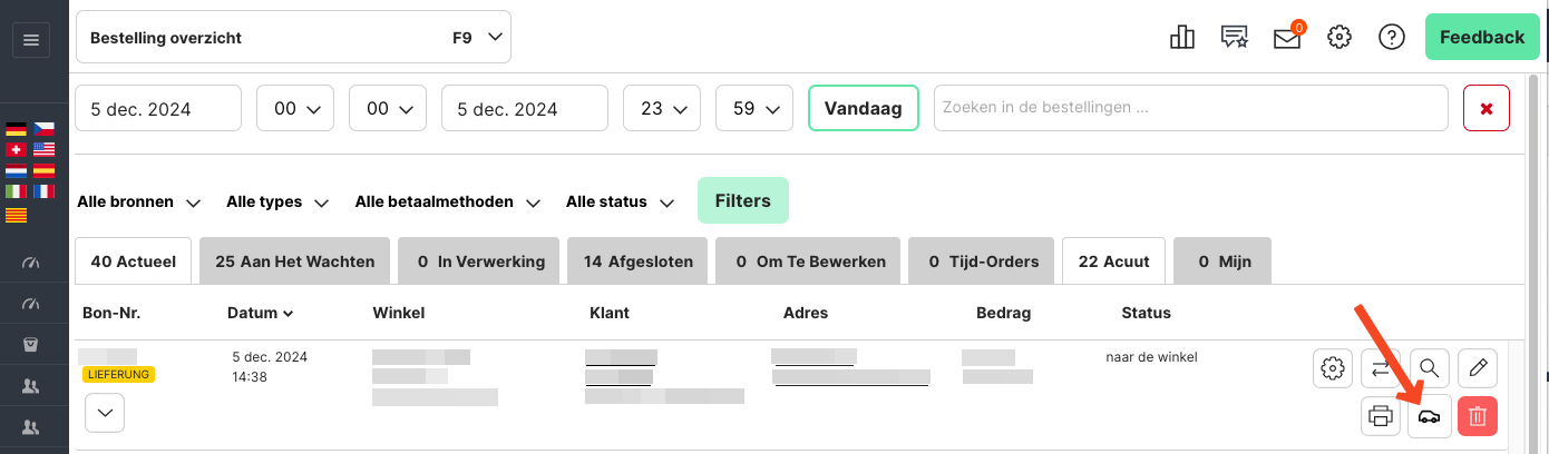 - Afhaalinformatie: Voeg eventuele extra opmerkingen toe voor de koerier (bijvoorbeeld of er een zijdeur te gebruiken is).