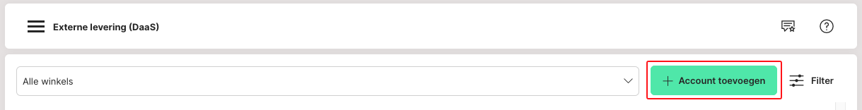 3. Linksboven in het scherm kun je op "Account toevoegen" klikken om een nieuwe account aan te maken. Je kunt ook je winkels filteren om te controleren of er al actieve DaaS-accounts zijn ingesteld.